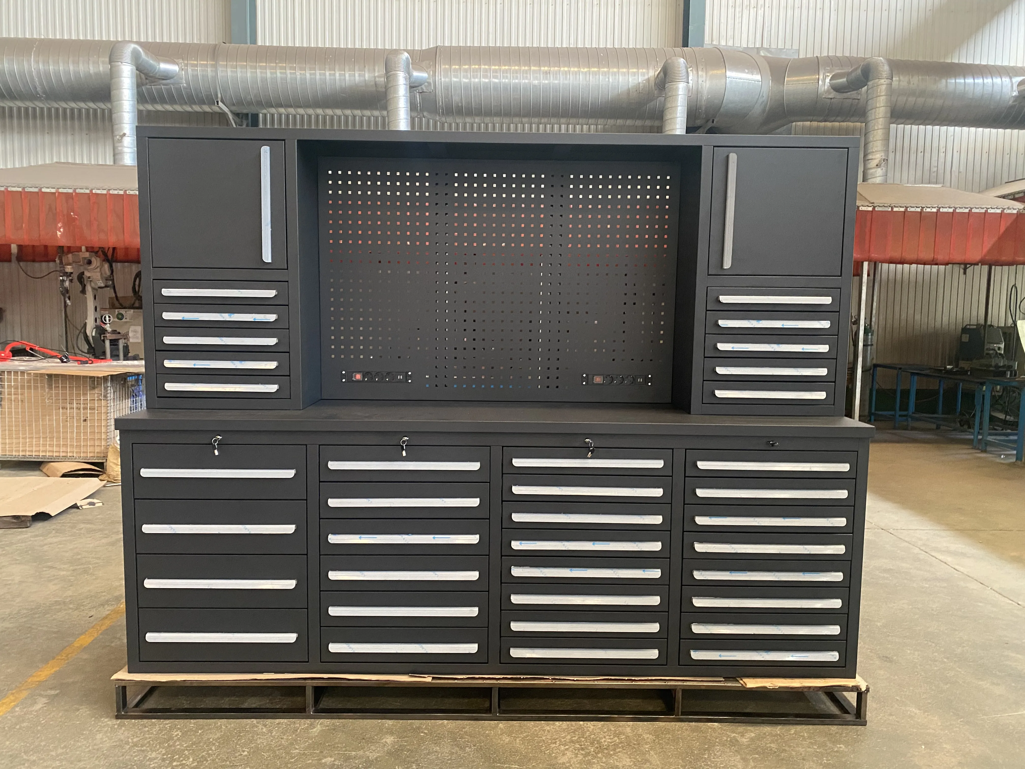 Hi instrumentum cabinets sunt facta de summus qualitas frigus-advolvit ferro laminis, ensuring firmitatem et stabilitatem. Et ficti sunt ficti ex galvanized ferro laminis, providing optimum anti-corrosio et anti-rubigo possessiones. Intus, sunt XXXVI femoralia, offering ampla repono spatium ad instrumenta et partes diversis magnitudinum.